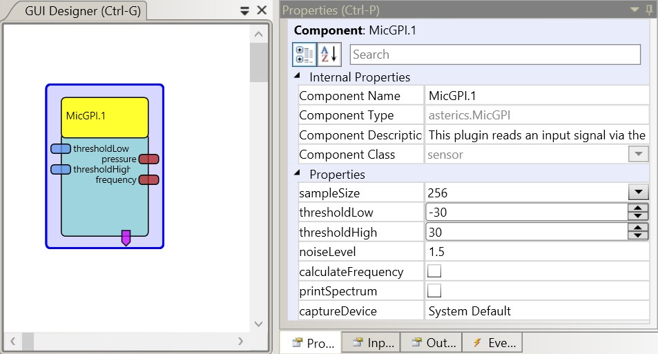 - pressure [double]: This port outputs the sound amplitude or pressure level of the mic input signal (the values depend on the selected calculation mode).